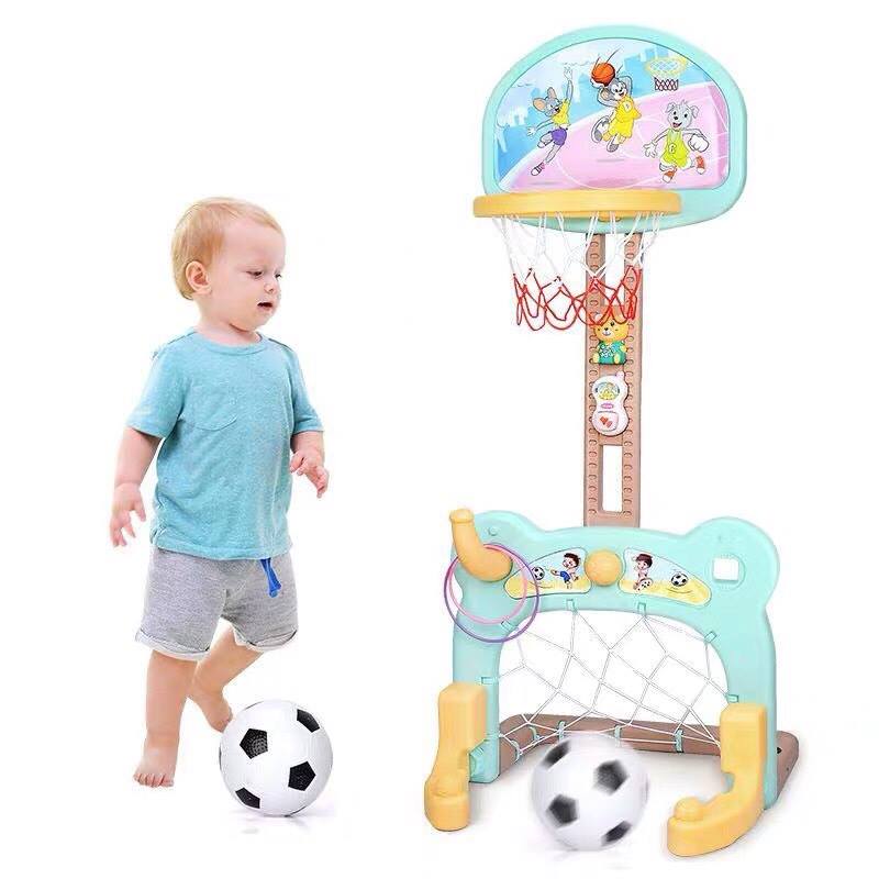 Opremljen kosarkaskim obrucem, fudbalskim golom i igrama sa obrucima, deciji kosarkaski sistem obezbedjuje predskolcima i malisanima da igraju razne igre sami ili sa svojim drugarima. Kosarkaski obruc omogucava podesavanje od 9 nivoa visine od 70-110cm kako bi se zadovoljila visina deteta. Set je napravljen od cvrste i stabilne strukture sa PP materijalom koji stiti zivotnu sredinu.