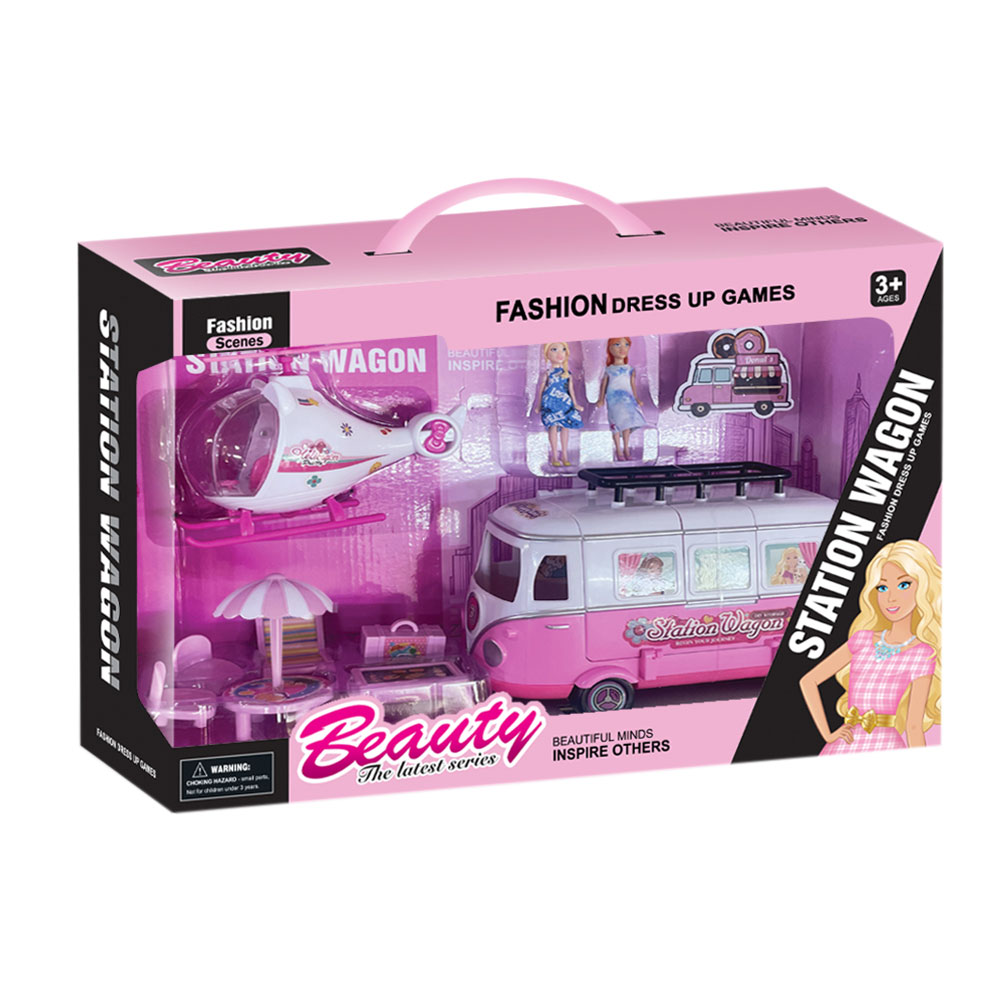 Minibus je spreman za najlepše putovanje ikada! Vaše lutkice sada mogu uživaju u pakoramskog razgledanju, a za potpun ugođaj tu su suncobran, koferi, roštilj i još dodataka. Kada stignu na destinaciju lutkice mogu nastaviti vožnju svojim belo-roze helikopterom. Deca mogu kreirati scene kao iz snova, dok razvijaju kreativnost i maštu!