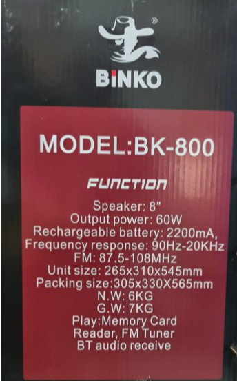 - BINKO Model: BK-800.