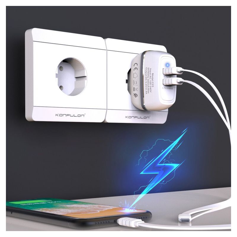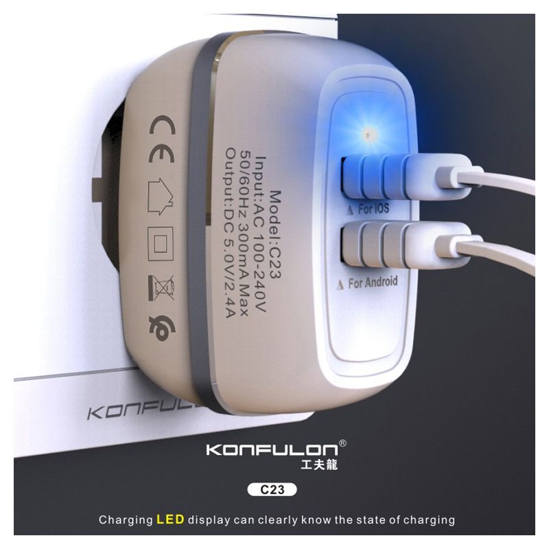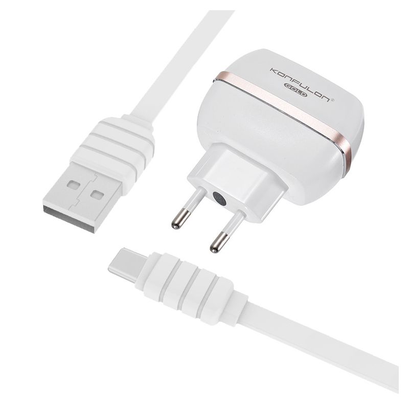 Naziv i vrsta robe: Kucni punjac KONFULON C23+S33A 2xUSB 5V 2.4A sa Type C kablom beli
