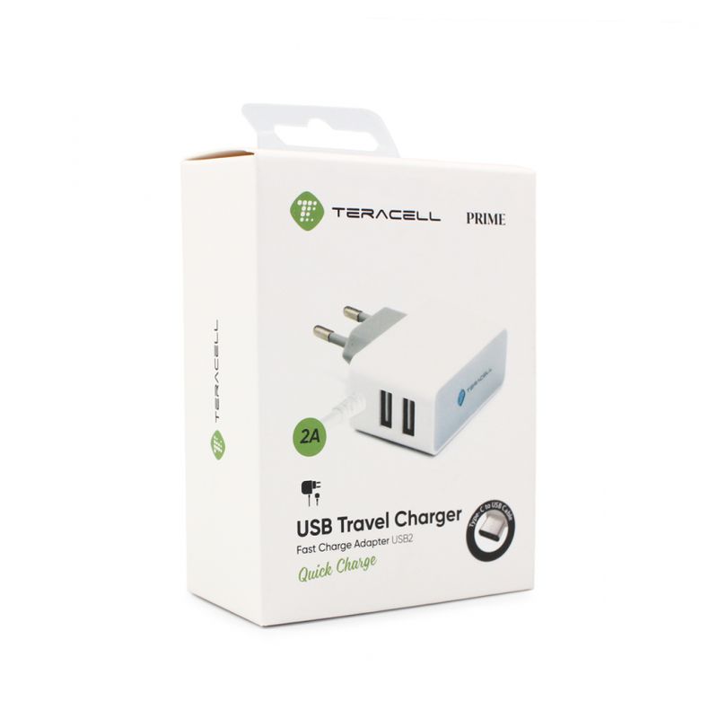 Naziv i vrsta robe: Kucni punjac Teracell Prime USB2 2A sa type C kablom beli