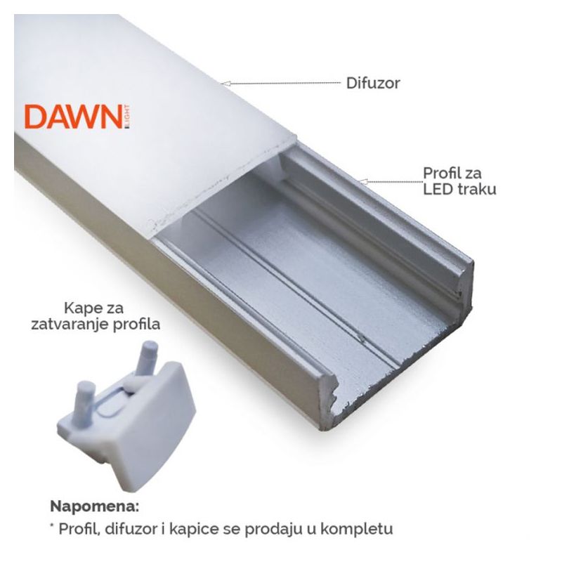 Naziv i vrsta robe: LED PROFIL LL-ALP002-R KOMPLET SIVI