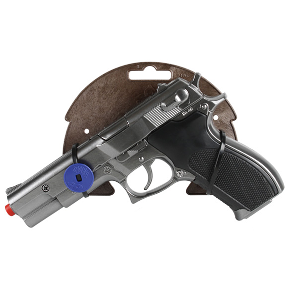 Nakon pritiska gornjeg okidača, pištolj se otvara na pola,i čini šaržer za 8 kapisla pristupačnim. Igračka je pogodna za decu stariju od 3 godine.