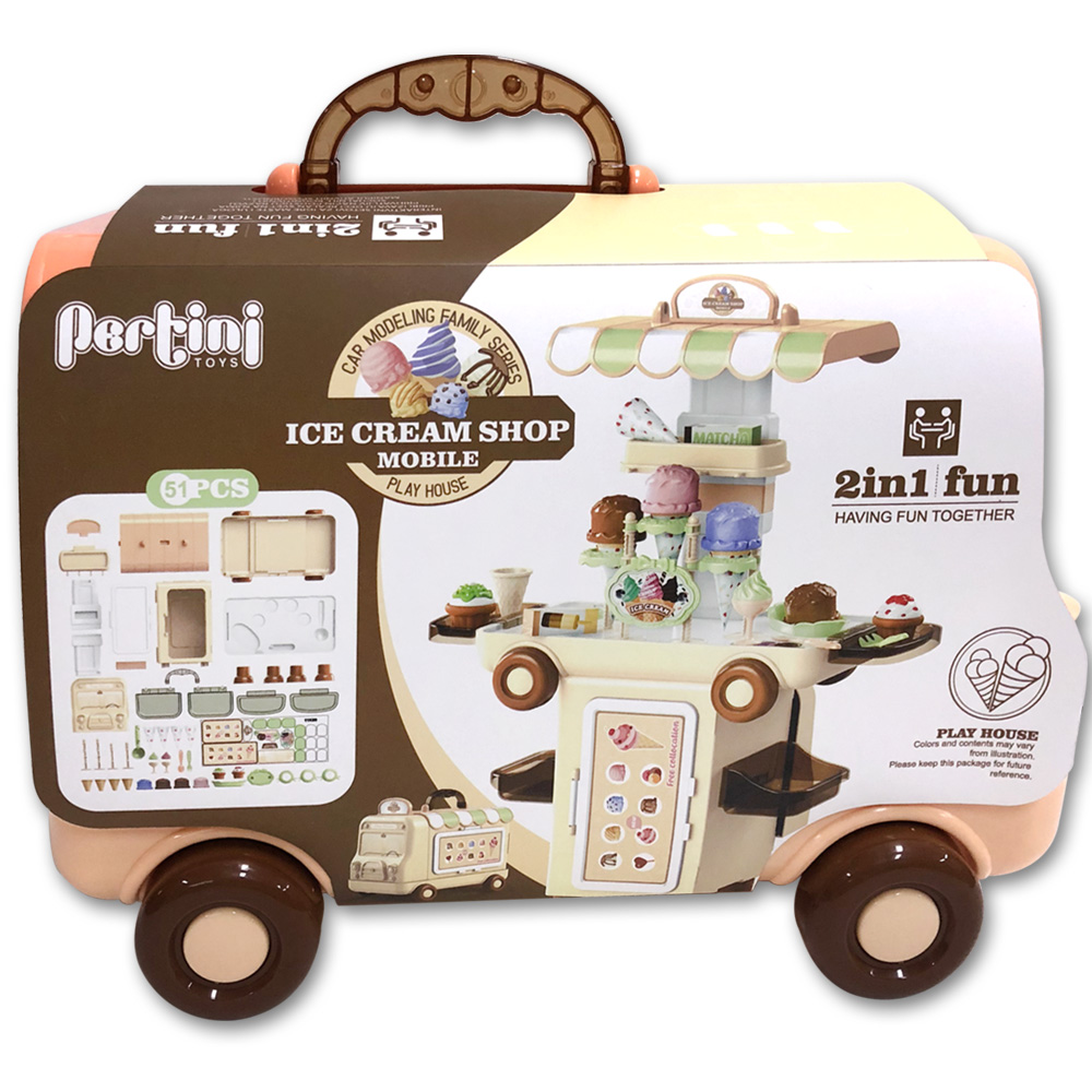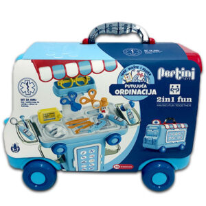 Interaktivni set koji približava deci realan svet na njima prihvatljiv i zanimljiv način – kroz igru! Interaktivni set podstiče razvoj socijalnih, kognitivnih i manipulativnih sposobnosti deteta. Neka vaše dete uživa a pritom i nesvesno gradi svoju ličnost i razvija sposobnosti novi interaktivni set. Set putujuća ordinacija je u vidu putujućeg kofera na točkiće koji sadrži komplet aksesoara od plastike za male poslastičare poput sladoleda, kolačića i dodataka za pravljenje istih. Dimenzije seta: 22,5cm x 34,5cm x 25cm. Uzrast: 3-7 god.