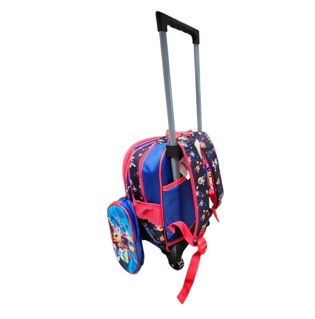- Ranac skolski sa tockicima i ruckom – Kao kofer. Kako bi dete moglo da vuce isti i oslobodi se tereta (tockici i rucka mogu da se skinu i da bude klasican ranac)