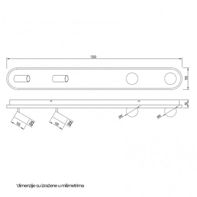 Dužina – 1200mm, Širina – 150mm + Visina – 60mm