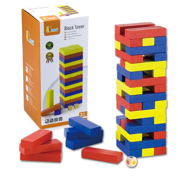Set sadrži drvene elemente u obliku pravougaonika, u tri boje ( crvena, žuta i plava ) koji se na različite načine mogu kombinovati. Mogu se slagati jedan na drugi poprečno i horizontalno do krajnjih građevina. U pakovanju se nalaze i dve kockice na kojima su obeležene boje crvena, žuta i plava i čijim bacanjem se određuje boja sledećeg elementa koji se ređa. Uzrast: 36m+